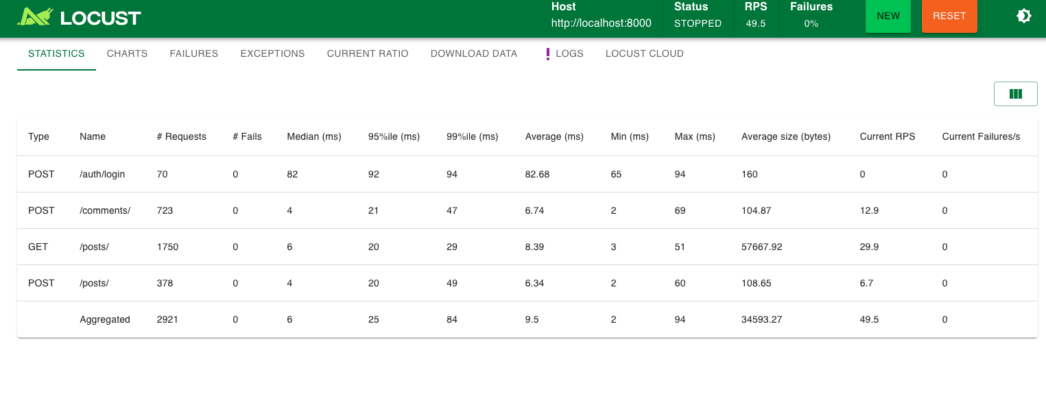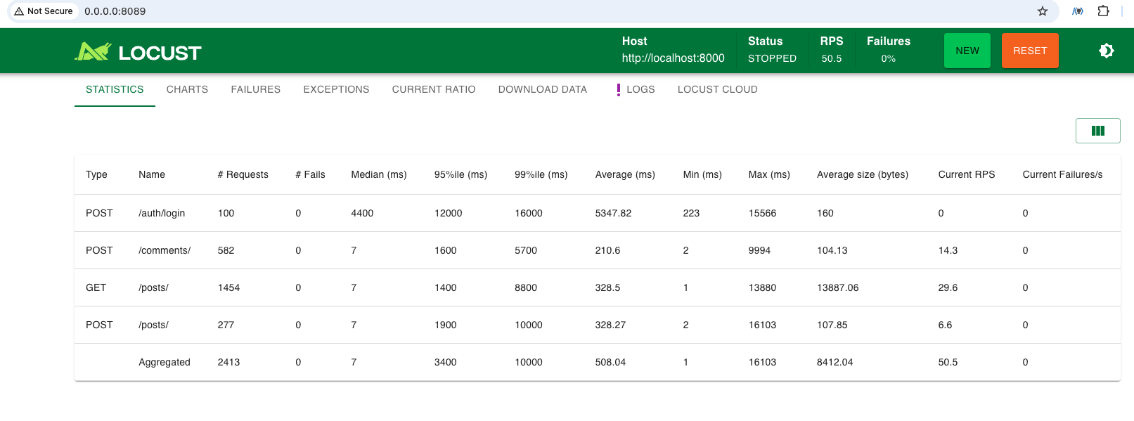 Locust를 써서 현재의 “기본 게시판”이 얼마나 부하를 견디는지 보고, 이후에 붙일 것들을 생각해봐야 한다.